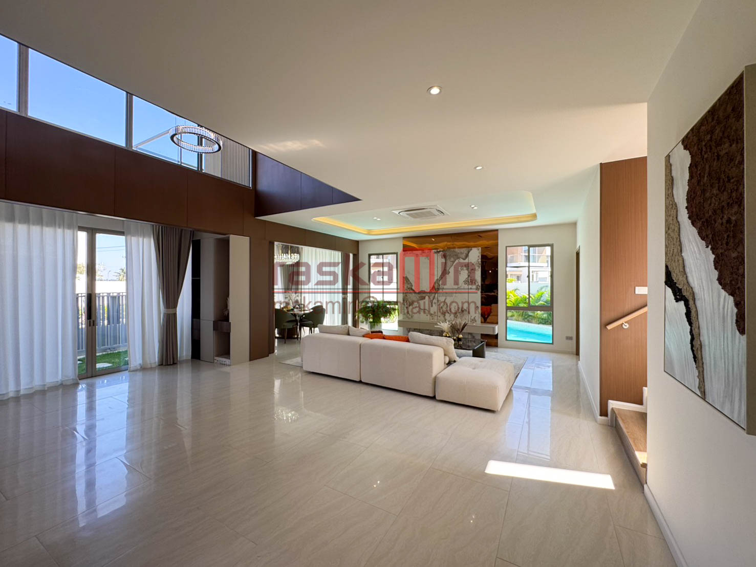Double-height ceiling with abundant natural light